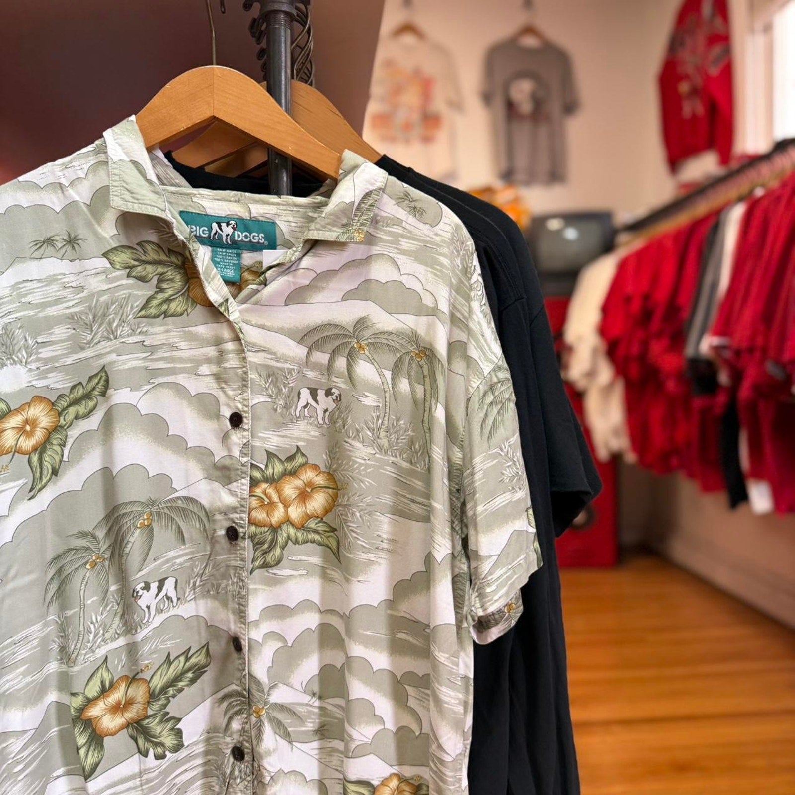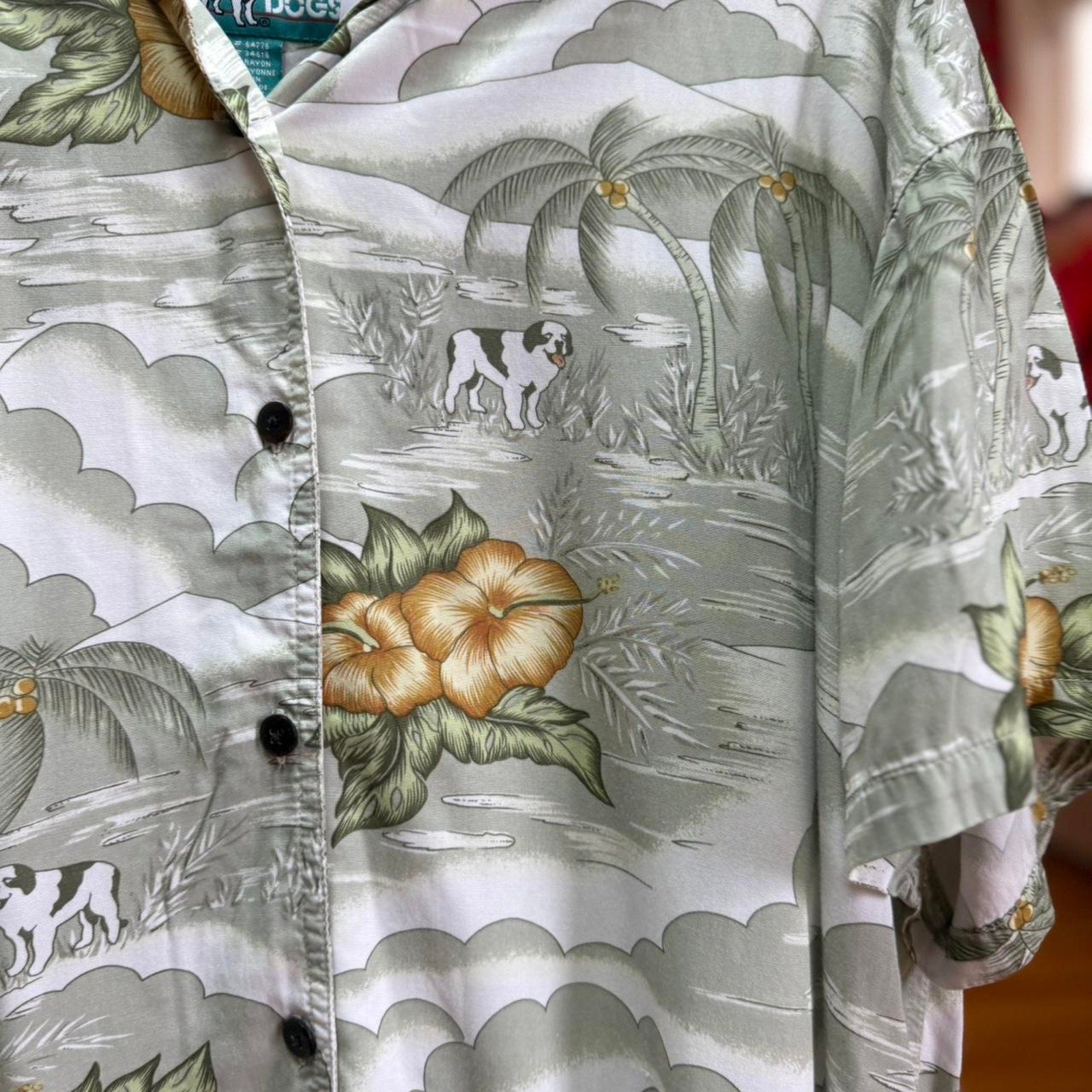 Vintage 90s Big Dogs Hawaiian Print Button Up Shirt